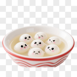 可爱卡通小汤圆在红白波浪纹碗中欢笑漂浮