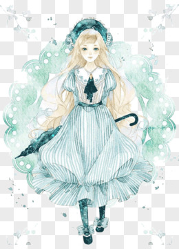 卡通手绘免抠长裙美女素材