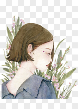 手绘卡通手捧花的女孩免抠素材