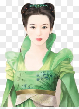卡通手绘穿汉服美女跳民族舞蹈元素