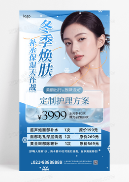 蓝色简约冬季护肤促销美妆促销冬季焕肤海报