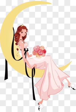 卡通手绘穿黑色礼服裙装的女性免抠元素