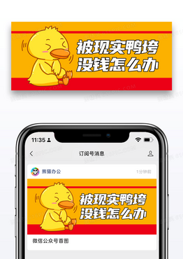 橙黄色被现实鸭垮没钱怎么办信公众号封面图片
