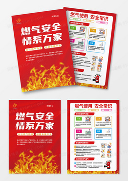 深红色简约大气风燃气安全情系万家煤气安全宣传单