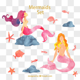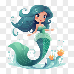 卡通风海洋日蚌壳中的美人鱼免抠元素