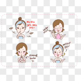 一组手绘插画风可爱女生卸妆敷脸护肤套图元素