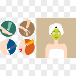 一组手绘卡通矢量敷面膜步骤图免抠素材