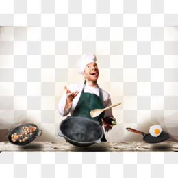 手绘卡通厨师炒菜免抠场景元素