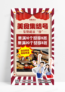 卡通国潮风线描传统小吃合集之肉夹馍元素