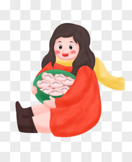 立冬之手绘卡通女孩在寒冬里吃红豆饺子