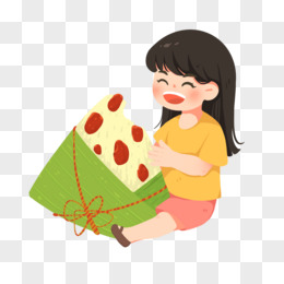 手绘卡通胖女孩吃东西的场景插画免抠元素