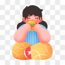 卡通一个胖女孩边吃奶茶蛋糕边看减肥秘籍免抠元素