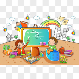 手绘老师教学生做手工场景素材