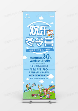 卡通简约欢乐冬令营美术培训招生展架