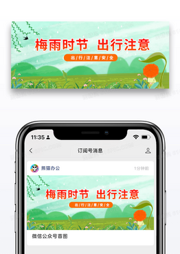 绿色卡通时尚梅雨季节微信公众号封面图片