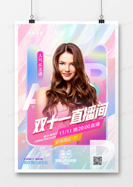 简约唯美双十一直播美妆直播促销海报设计