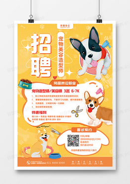 宠物店萌宠美容师招聘海报