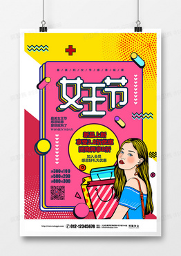 孟菲斯波普风三月八日女王节促销宣传海报设计