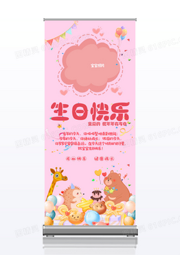 粉色梦幻卡通生日宴满月宴展架易拉宝