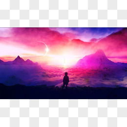 粉色梦幻天空海面