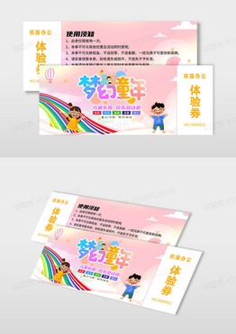 彩色卡通梦幻童年儿童乐园欢乐总动员体验券儿童乐园门票入场券