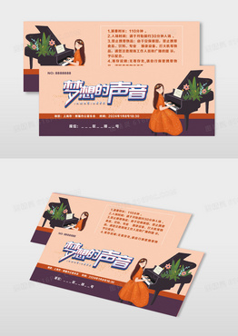 手绘女孩陶醉演奏钢琴立体梦想的声音艺术字音乐会入场券观演门票