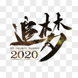 简约2020毛笔风艺术字元素年会追梦