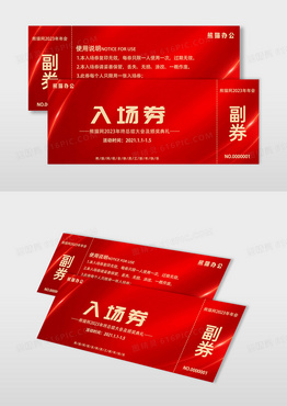 红色喜庆2023企业公司年会入场券门票代金券