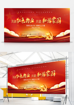红色大气物业服务共创红色物业共建和谐家园宣传展板