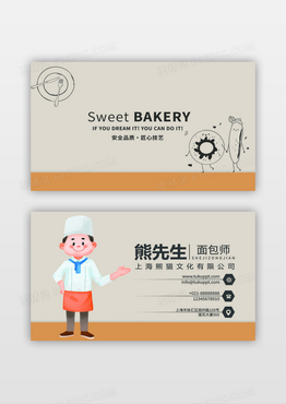 简约卡通面包师糕点烘焙名片设计