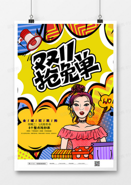简约波普风双十一抢免单宣传海报