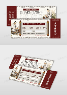 中国红古风中国风中医养生体验券免费体验券优惠券