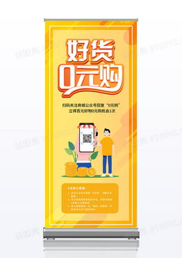 橙色简约流体渐变好物0元购免费拿易拉宝展架