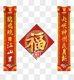 卡通一匹红色奔跑的马身上有着福字花纹免抠元素