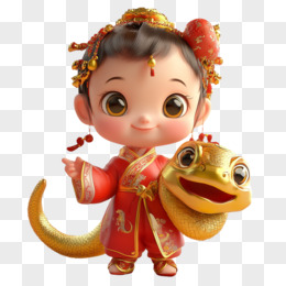 3D立体新年金色蛇和红色福袋金币免抠元素