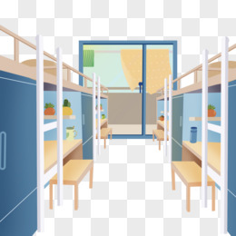 卡通手绘男生坐在寝室床上看手机免抠素材