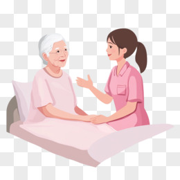 插画穿粉色衣服的护工和床上的老人交谈免抠元素