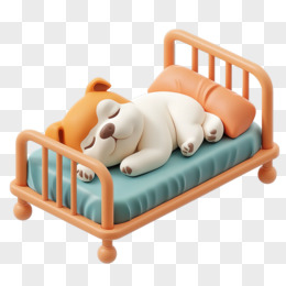 3D立体风格床上疲劳睡着的小狗免抠元素