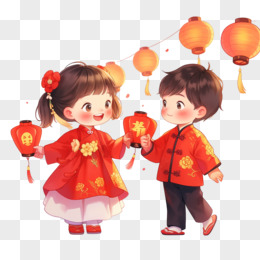 插画风手拿灯笼免抠素材
