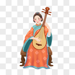 手绘清朝服饰女子弹琵琶免抠元素