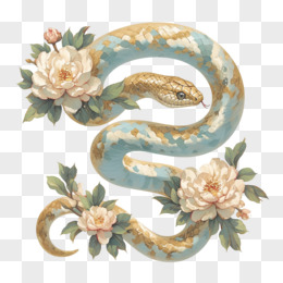 中国风牡丹花和蛇免抠元素
