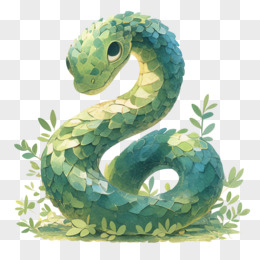 中国风新年绿色蛇和树叶免抠元素