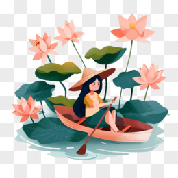 免抠木船荷花素材