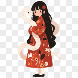 手绘卡通穿传统服饰的美女插画免抠元素