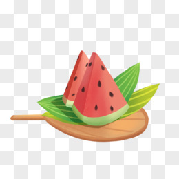 手绘卡通立夏西瓜绿叶蒲扇小清新清凉夏日元素免扣