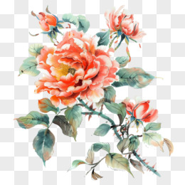 水墨风植物玫瑰免抠元素