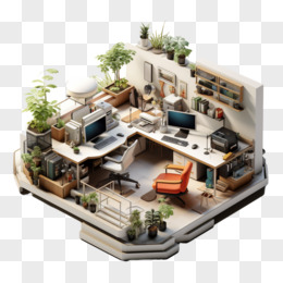 立体商务办公工作间工位元素