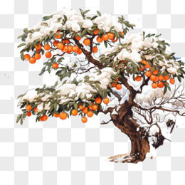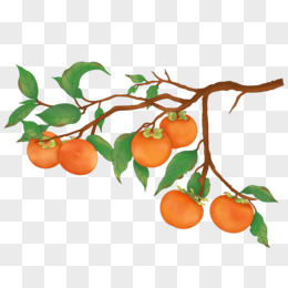 手绘国潮风矢量扁平柿子树枝免抠元素