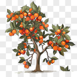 卡通手绘女孩和一栏筐柿子免抠免抠元素