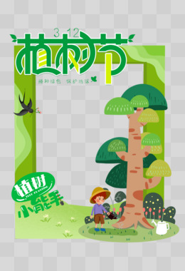 手绘卡通男孩在树下荡秋千玩耍免抠元素